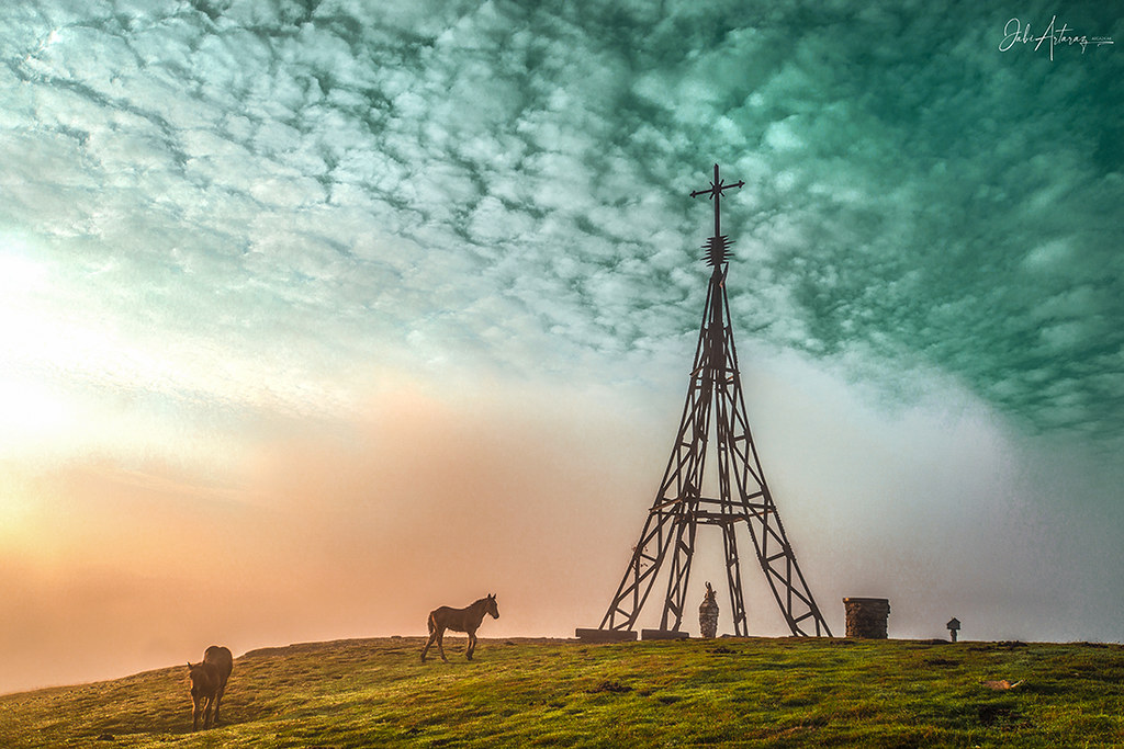 cruz en el monte más alto de los alrededores, en la loma de Gorbeiagana. Se